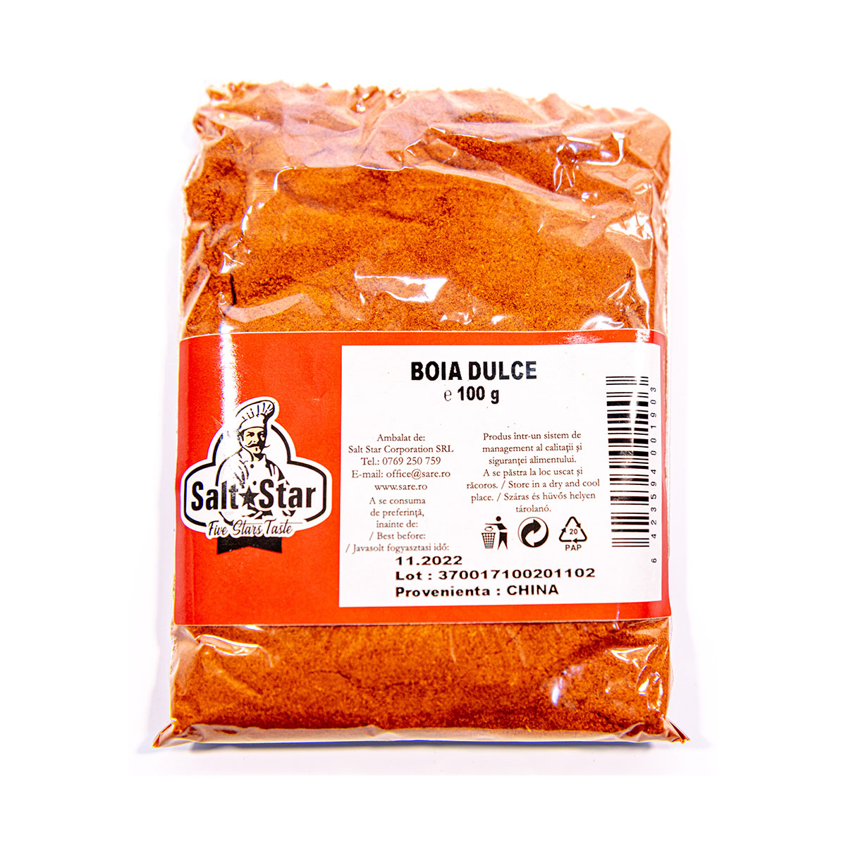 Produs ambalat de Salt Star Corporation.