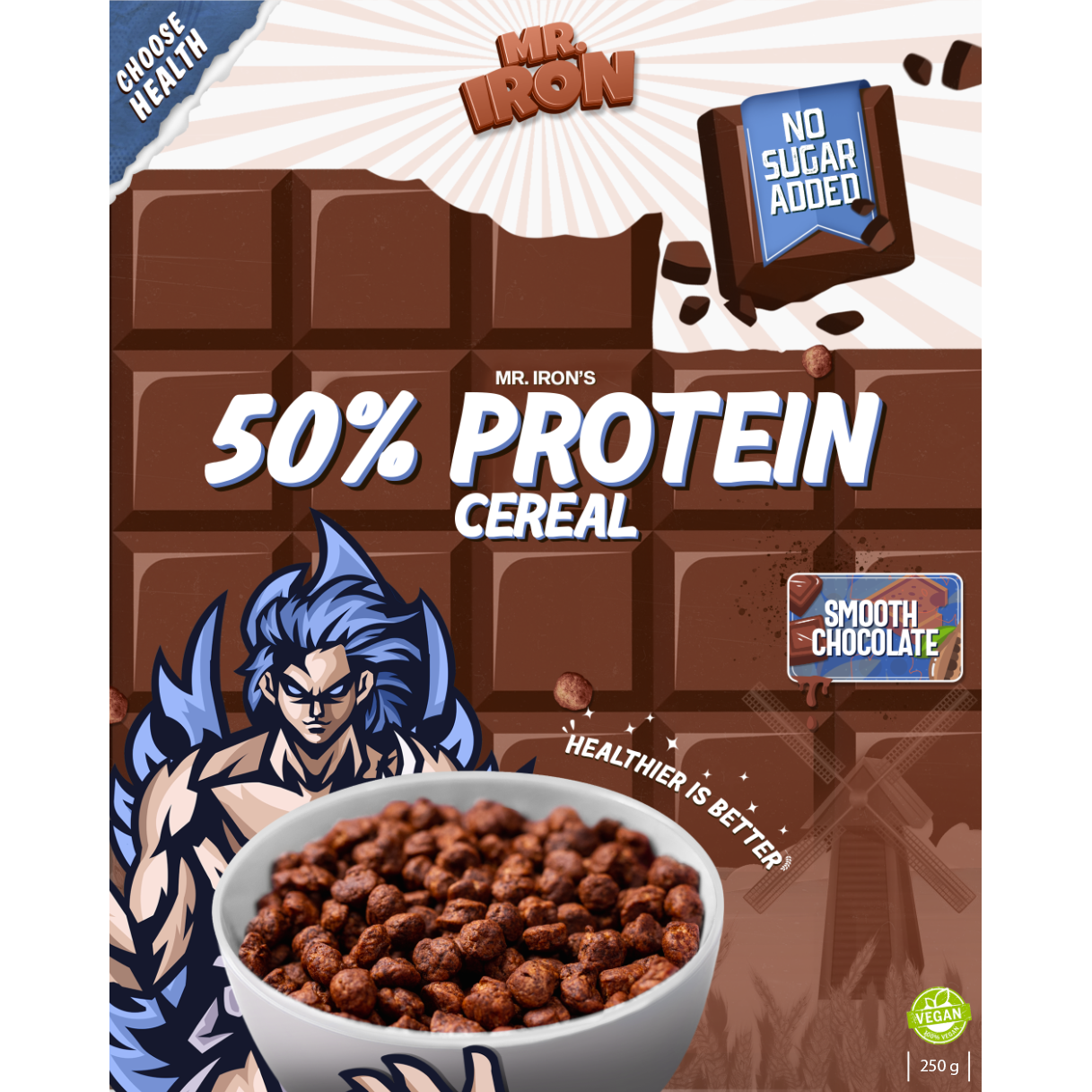 Cereale cu 50% continut proteic Cocoa Mr. Iron si fara zahar.