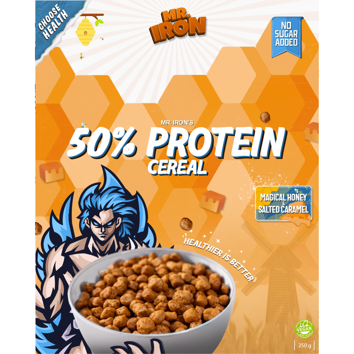 Cereale cu 50% continut proteic Salted Caramel Mr. Iron si fara zahar.