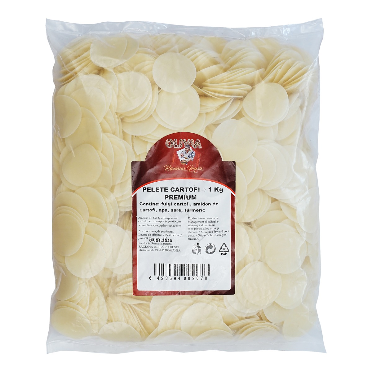 Contine: fulgi cartofi, amidon de cartofi, apa, sare, turmeric.