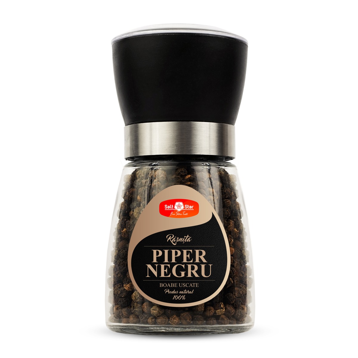 Rasnita reutilizabila cu piper negru boabe uscate.