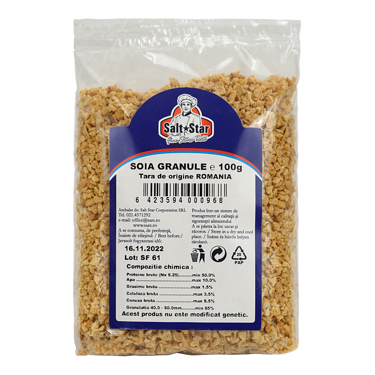Compozitie chimica: proteine brute (Nx 6.25) minim 50.0%, apa (max. 10%), grasime bruta (max.1.5%), celuloza bruta (max. 3.5%), cenusa bruta (max. 8.5%), granulatie 40.0-80.0 mm (min.85%).